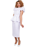 2 piece Ruffle Shoulder Scuba Skirt Suit