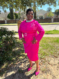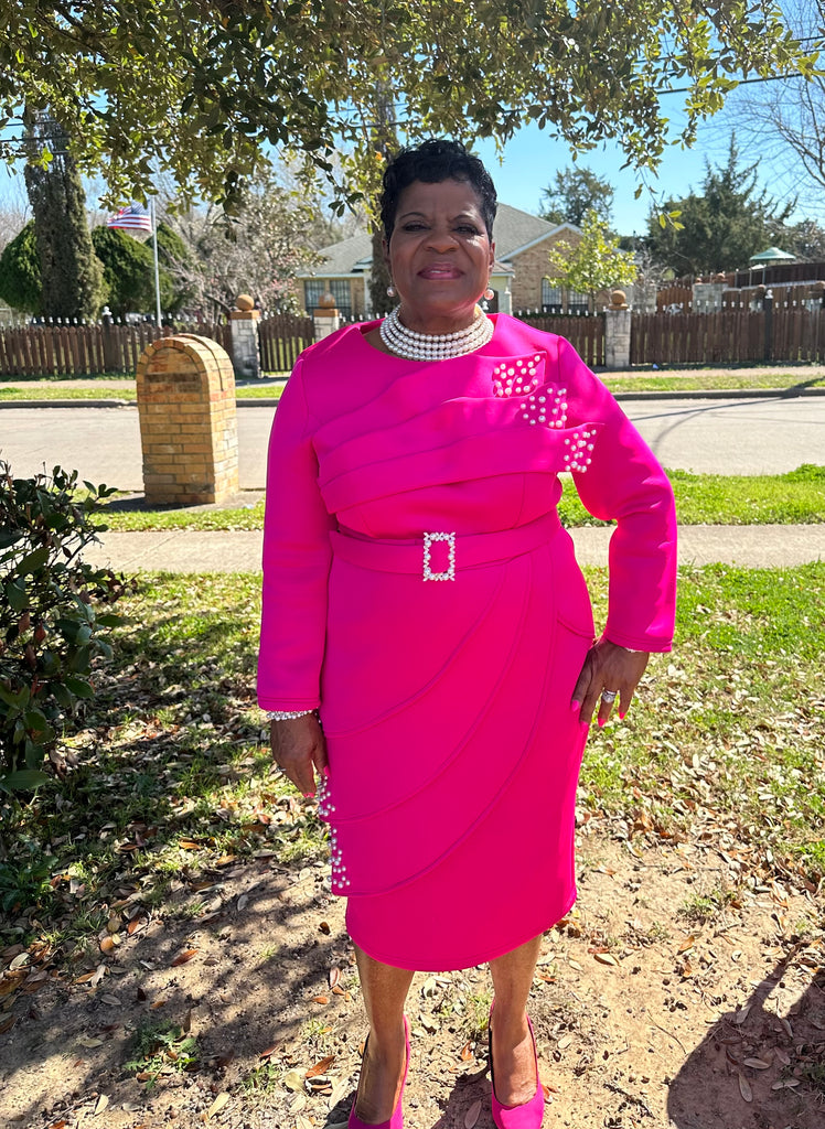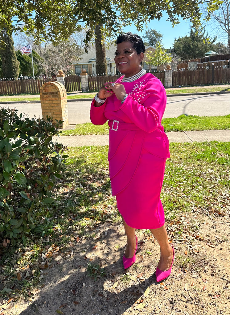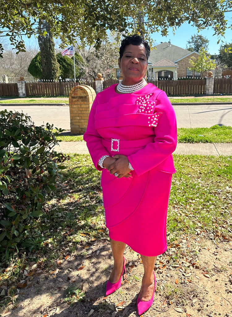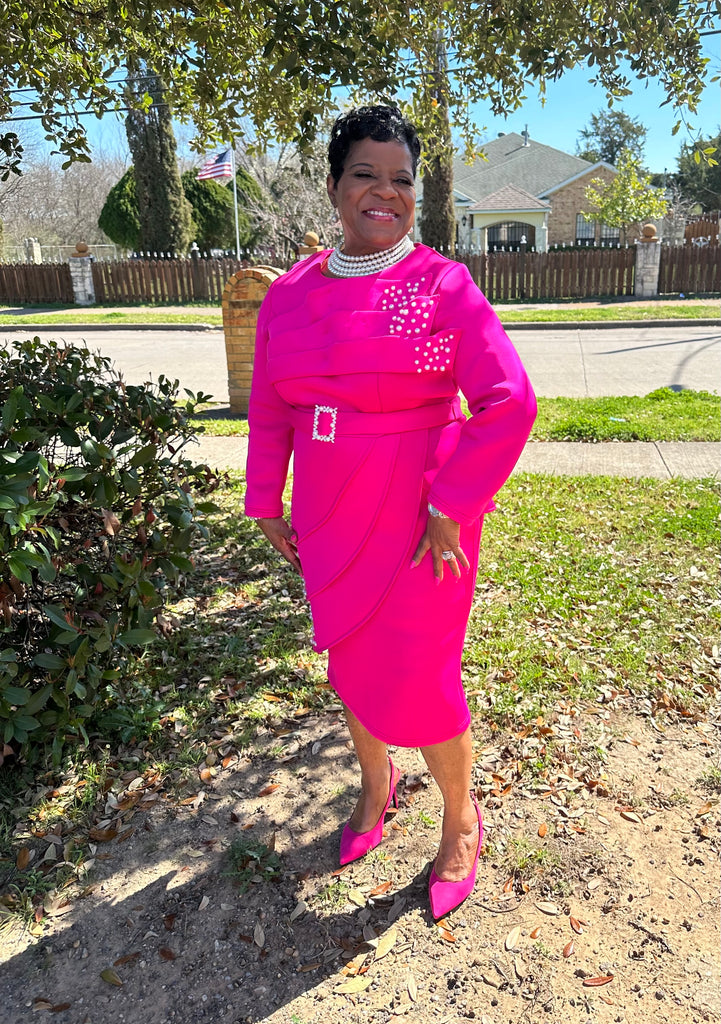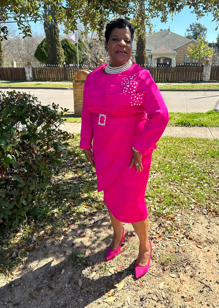 2 piece Pearl Embellished Scuba Skirt Suit