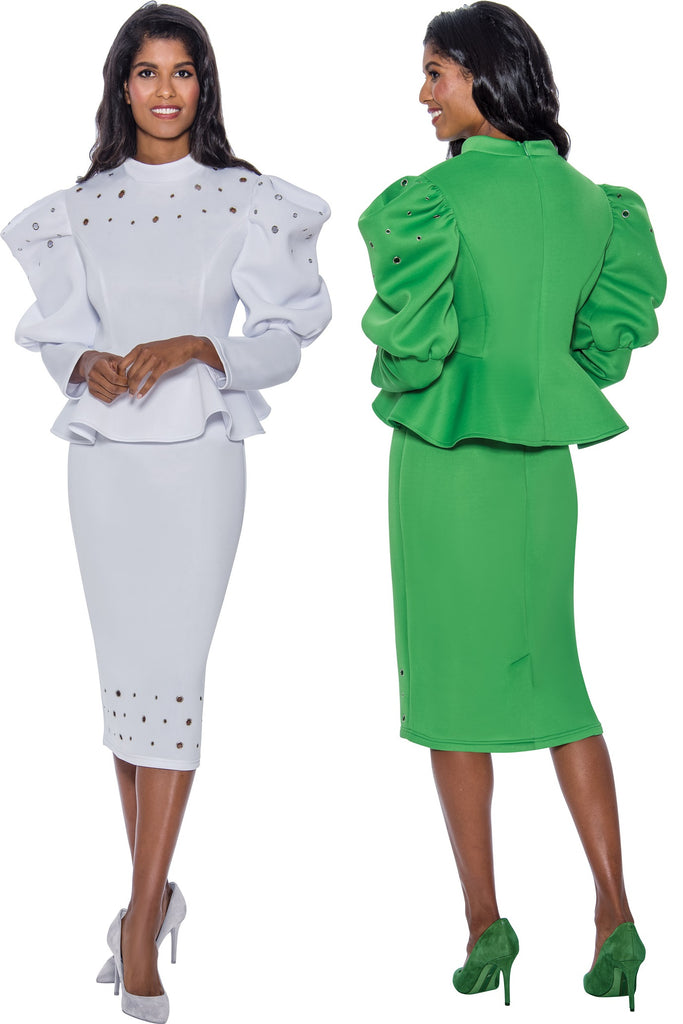 Stellar Looks 1682 grommet puff sleeve skirt suit