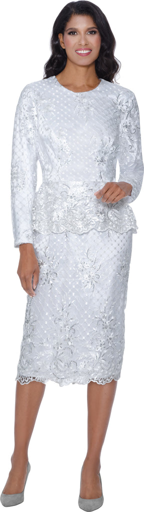 Stellar Looks 600431 1 piece Lace Dress Color: Lilac, White Size: 8, 10, 12, 14, 16, 16W, 18, 18W, 20W, 22W, 24W, 26W