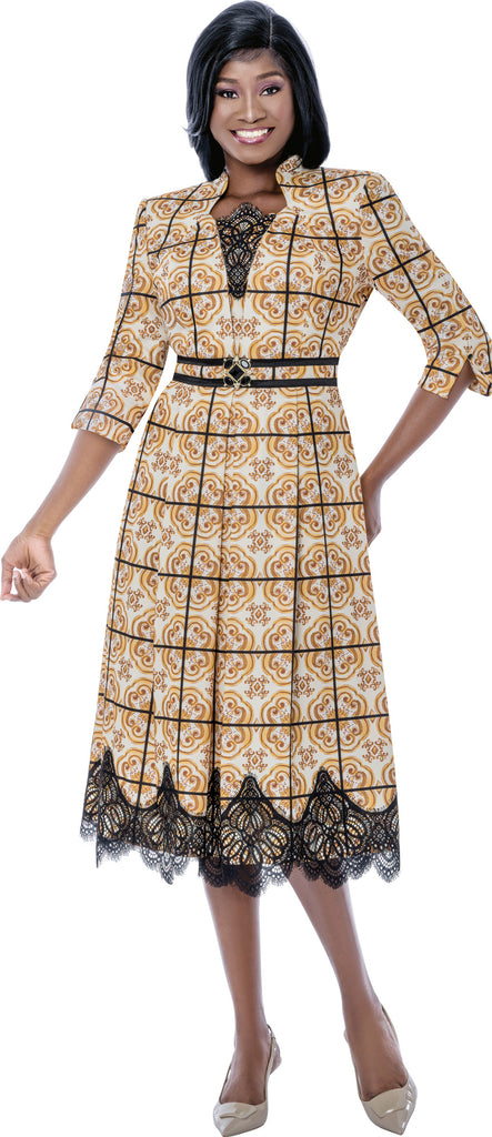 Terramina 3045 1 piece Print Dress Colors: Yellow Sizes: 8, 10, 12, 14, 16, 18, 20, 22, 24