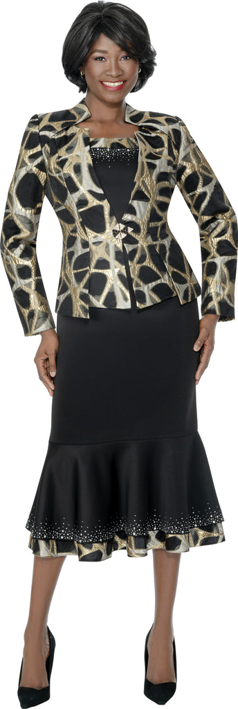 Terramina 3048 3 piece Brocade Skirt Suit Colors: Black/Gold Sizes: 8, 10, 12, 14, 16, 18, 20, 22, 24