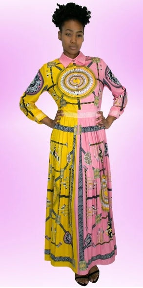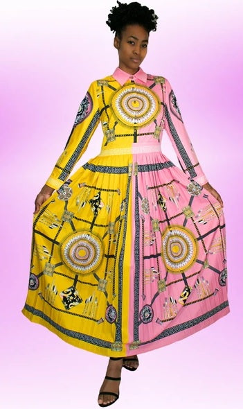 Two Tone Maxi Dress 1 piece Print Maxi Dress Colors: Pink/Yellow Sizes: S, M, L, XL (16), 2X (18), 3X (20)