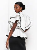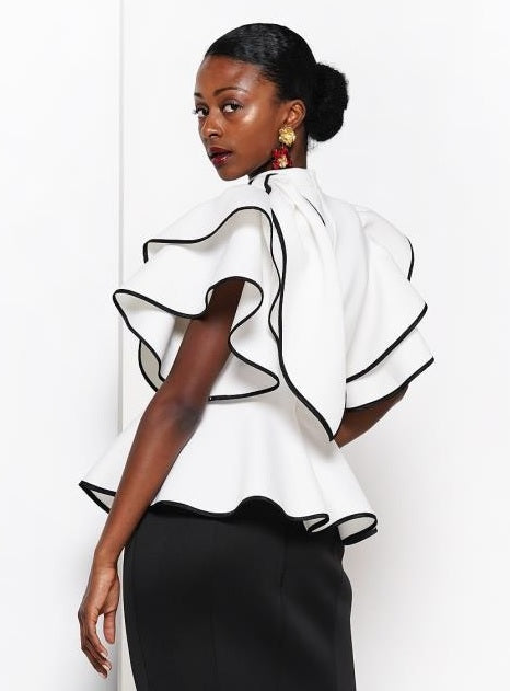 1 piece Scuba Ribbon Detail Blouse w/Detachable Bow