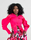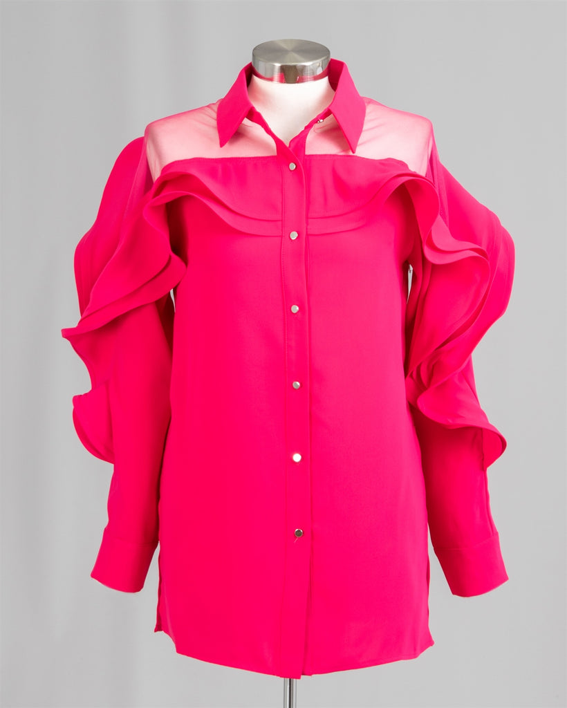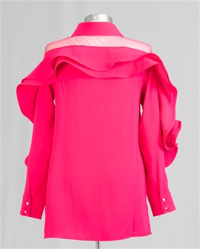 Why Dress T200083 Ruffle Sleeve Top Color: Black, Fuchsia Size: S, M, L, XL, XXL