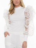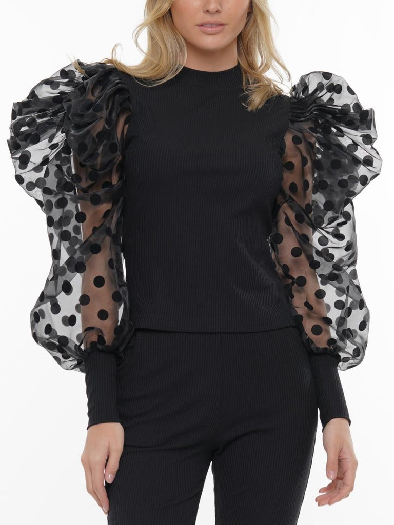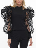 Why Dress T210001 Polka Dot Organza Puff Sleeve Top Color: Black, White Size: S, M, L, XL, XXL
